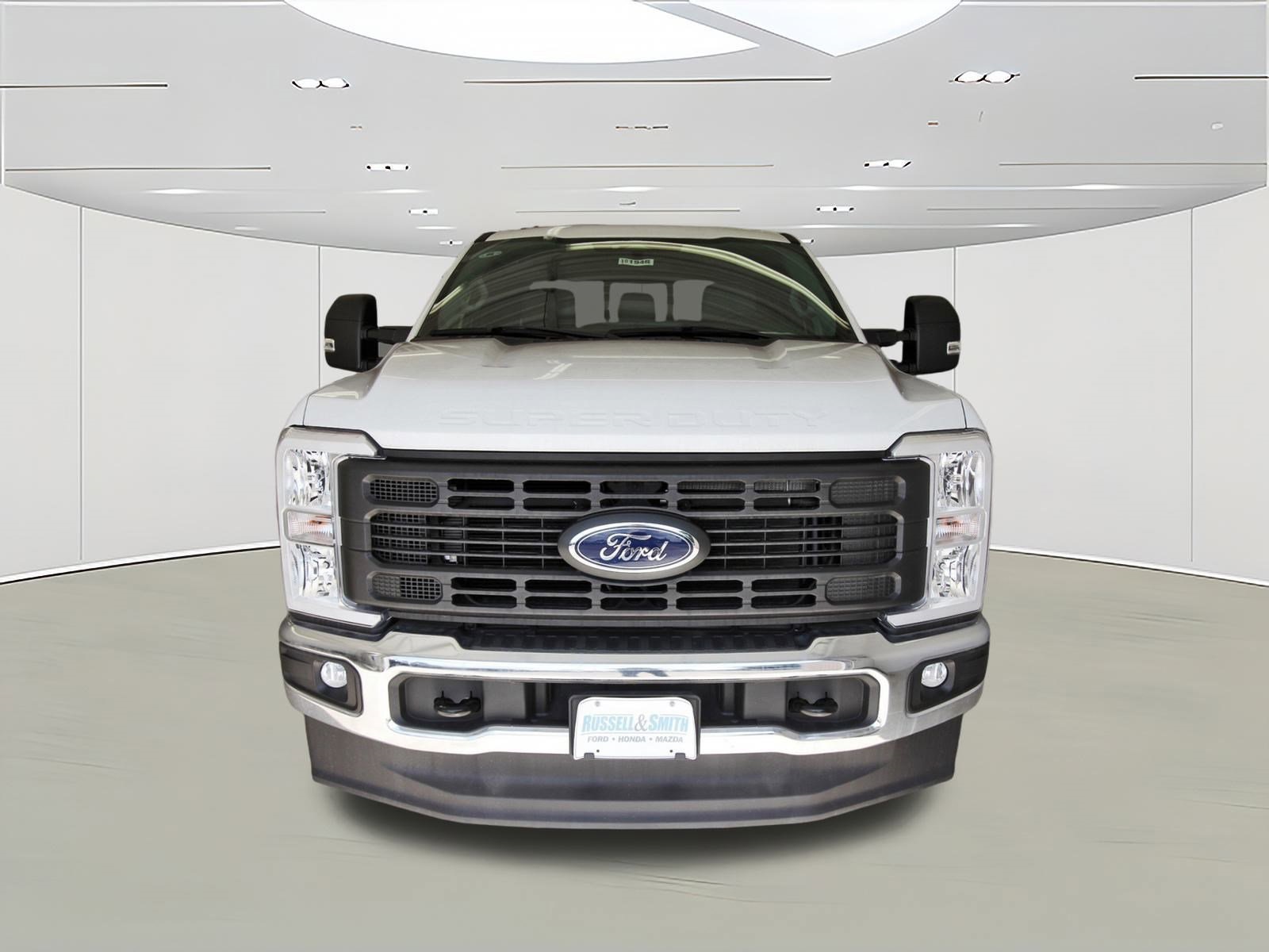 Here at Russell & Smith Ford, we appreciate your business and that you've chosen to buy or lease a new Ford or used car from us here in the greater Houston area. When you do, we want you to enjoy the perks of choosing us, that's why we have our Customer Advantage Program! Whether you're from right here in Houston, a bit farther out in areas like Pearland, Sugar Land, or Pasadena, or anywhere else in Texas and beyond, enroll in our Advantage Program to take advantage of thousands in benefits and savings! FX4 Off-Road Package, Order Code 610A, XL Chrome Package (Bright Chrome Hub Covers & Center Ornaments), F-350 SuperDuty XL, Super Cab, Power Stroke 6.7L V8 DI 32V OHV Turbodiesel, 10-Speed Automatic, 4WD, Oxford White, Medium Earth Gray Vinyl, 120V/400W Outlet, 18" Argent Painted Steel Wheels, 190 Amp Alternator, 4-Wheel Disc Brakes, ABS brakes, Air Conditioning, Brake assist, Compass, Delay-off headlights, Dual 68 AH/65 AGM Batteries, Dual front impact airbags, Dual front side impact airbags, Electronic Stability Control, Electronic-Locking w/3.55 Axle Ratio, Emergency communication system: SYNC 4 911 Assist, Engine Block Heater, Exterior Parking Camera Rear, Front anti-roll bar, Front License Plate Bracket, Front reading lights, Fully automatic headlights, HD Vinyl 40/20/40 Split Bench Seat, Heated door mirrors, Illuminated entry, Low tire pressure warning, Outside temperature display, Overhead airbag, Overhead console, Panic alarm, Passenger cancellable airbag, Passenger vanity mirror, Platform Running Boards, Power door mirrors, Power steering, Power windows, Power-Sliding Rear-Window w/Defrost, Privacy Glass, Rear step bumper, Remote keyless entry, Speed control, Split folding rear seat, Steering wheel mounted audio controls, Tachometer, Telescoping steering wheel, Tilt steering wheel, Traction control, Trip computer, Turn signal indicator mirrors, Upfitter Switches (6), and Variably intermittent wipers. Customer might not be eligible for all rebates in sale price and must finance through FMCC. See dealer for details. Price Includes:$8500 - Model Year Closeout Bonus Cash - Super Duty. Exp. 12/01/2025