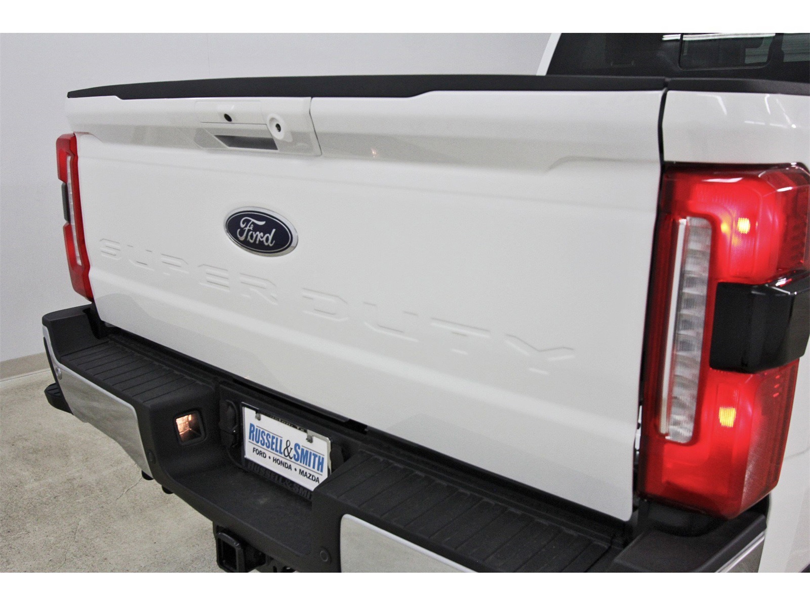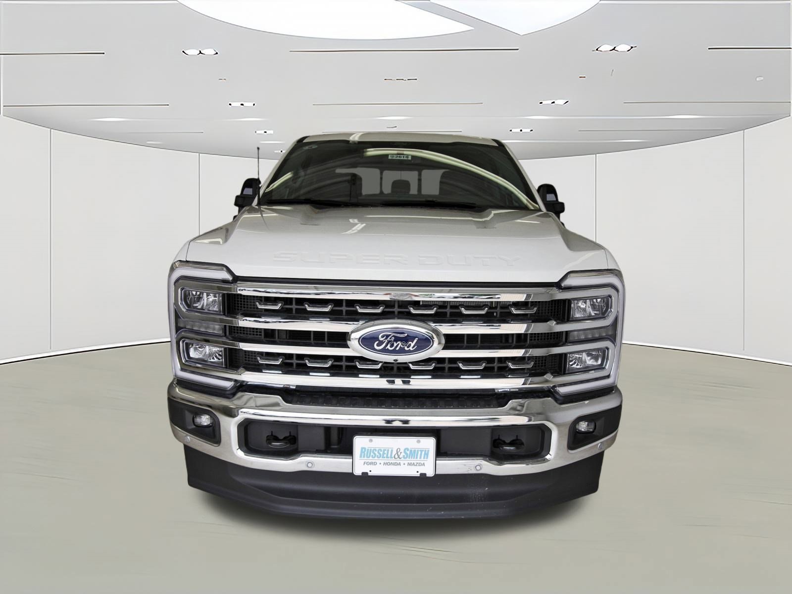 Here at Russell & Smith Ford, we appreciate your business and that you've chosen to buy or lease a new Ford or used car from us here in the greater Houston area. When you do, we want you to enjoy the perks of choosing us, that's why we have our Customer Advantage Program! Whether you're from right here in Houston, a bit farther out in areas like Pearland, Sugar Land, or Pasadena, or anywhere else in Texas and beyond, enroll in our Advantage Program to take advantage of thousands in benefits and savings! F-250 >10K GVWR Package, FX4 Off-Road Package (Hill Descent Control, Off-Road Specifically Tuned Shock Absorbers, and Unique FX4 Off-Road Box Decal), Lariat Ultimate Package (4-Way Adjustable Headrests, Head-Up Display, Power-Deployable Running Boards, Power-Sliding Rear-Window w/Defrost, Privacy Glass, Pro Trailer Backup Assist, Pro Trailer Hitch Assist, Radio: B&O Unleashed Sound System by Bang & Olufsen, SiriusXM Radio w/360L, SYNC 4 w/Enhanced Voice Recognition, and Tailgate Step & Handle), Order Code 608A, 4-Wheel Disc Brakes, 8 Speakers, ABS brakes, Adaptive Cruise Control w/Stop-and-Go, Adjustable pedals, Air Conditioning, Alloy wheels, AM/FM radio: SiriusXM with 360L, Auto High-beam Headlights, Auto-dimming Rear-View mirror, Automatic High Beam, Automatic temperature control, BLIS w/Cross-Traffic Alert, Brake assist, Bumpers: chrome, Compass, Delay-off headlights, Driver door bin, Driver vanity mirror, Dual AGM 68 AH Battery, Dual front impact airbags, Dual front side impact airbags, Electronic Stability Control, Emergency communication system: SYNC 4 911 Assist, Engine Block Heater, Flow-Through Console, Front & Rear Parking Sensors, Front ActiveX Trimmed 40/Console/40 Seats, Front anti-roll bar, Front Bucket Seats, Front Center Armrest, Front dual zone A/C, Front fog lights, Front License Plate Bracket, Front reading lights, Fully automatic headlights, Garage door transmitter, Heated door mirrors, Heated front seats, Heated rear seats, Heated steering wheel, Illuminated entry, Lane-Keeping System, Low tire pressure warning, Memory seat, Navigation System, Outside temperature display, Overhead airbag, Overhead console, Panic alarm, Passenger door bin, Passenger vanity mirror, Pedal memory, Post-Collision Braking, Power door mirrors, Power driver seat, Power passenger seat, Power steering, Power windows, Pre-Collision Assist, Radio: B&O Sound System by Bang & Olufsen, Rain sensing wipers, Rear Parking Sensors, Rear reading lights, Rear seat center armrest, Rear step bumper, Rear window defroster, Remote keyless entry, Security system, Speed control, Split folding rear seat, Steering wheel mounted audio controls, Tachometer, Telescoping steering wheel, Tilt steering wheel, Traction control, Trip computer, Turn signal indicator mirrors, Upfitter Switches (6), Variably intermittent wipers, Ventilated front seats, and Wheels: 18" Bright Machined & Carbonized Gray Alum.